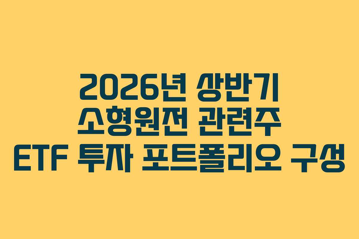 2026년 상반기 소형원전 관련주 ETF 투자 포트폴리오 구성